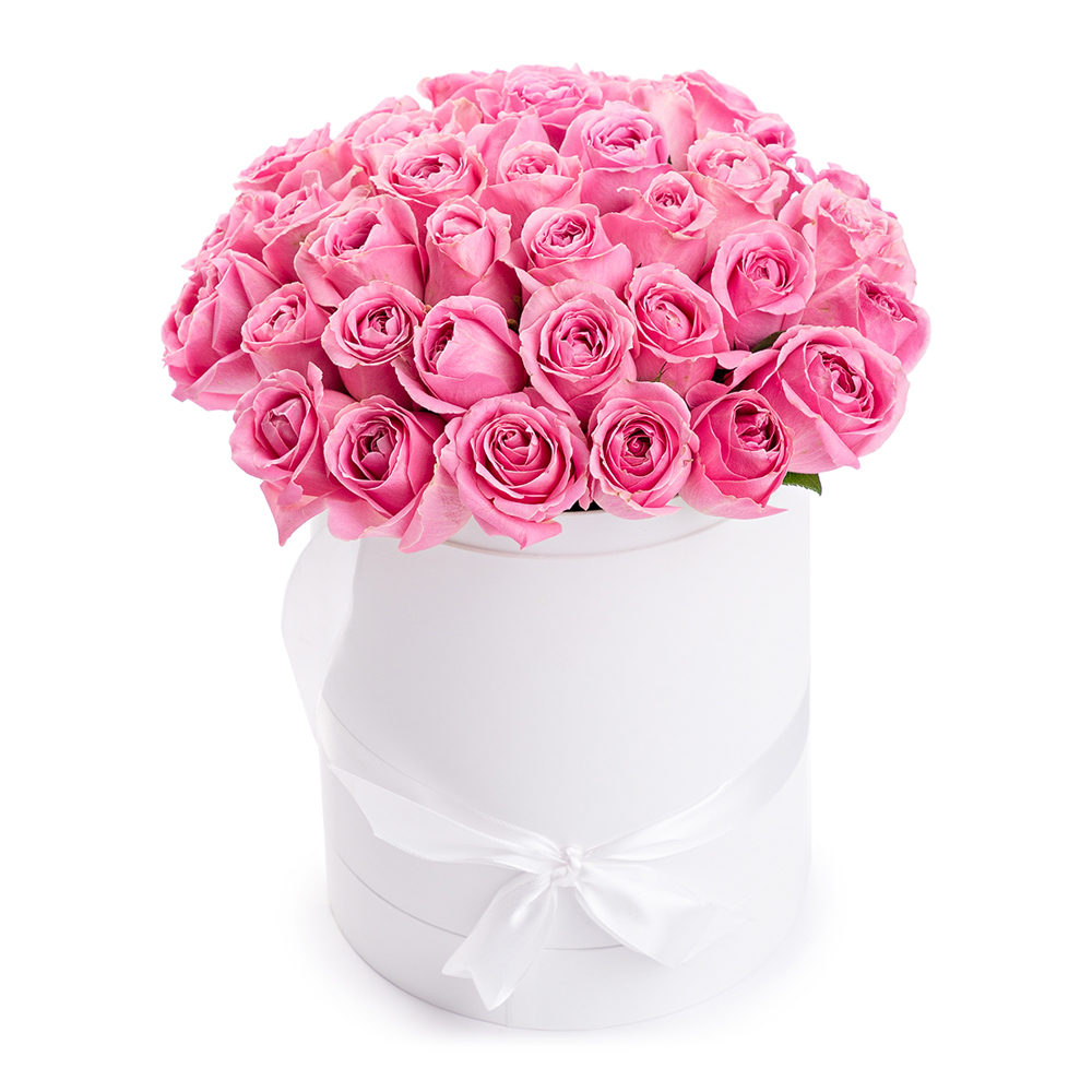 35 розовых роз 40 см в шляпной коробке