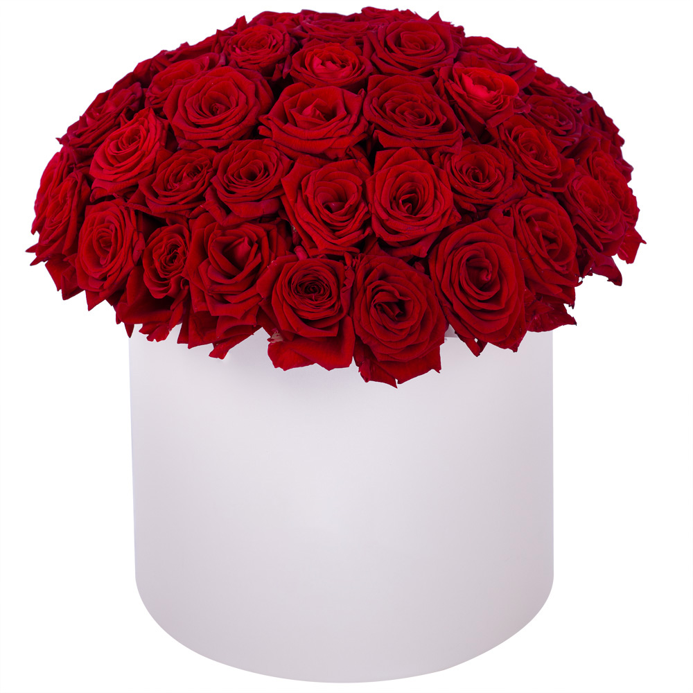 Букет из 51 красной розы premium в кремовой шляпной коробке