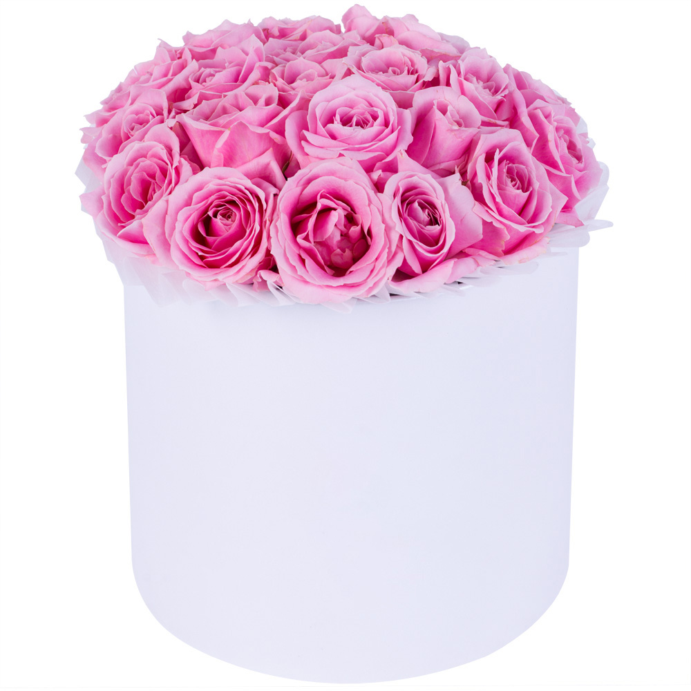 Букет из 21 розовой розы premium в белой шляпной коробке