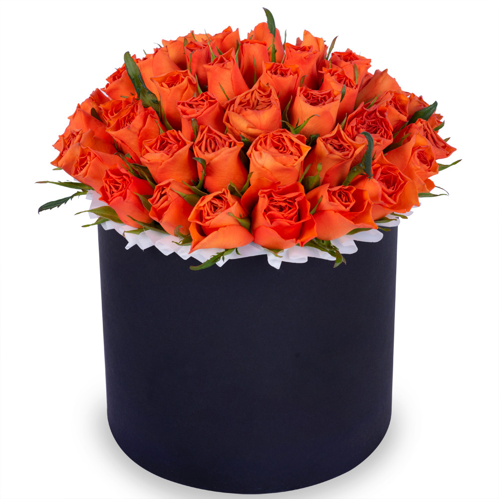 51 оранжевая роза в черной шляпной коробке