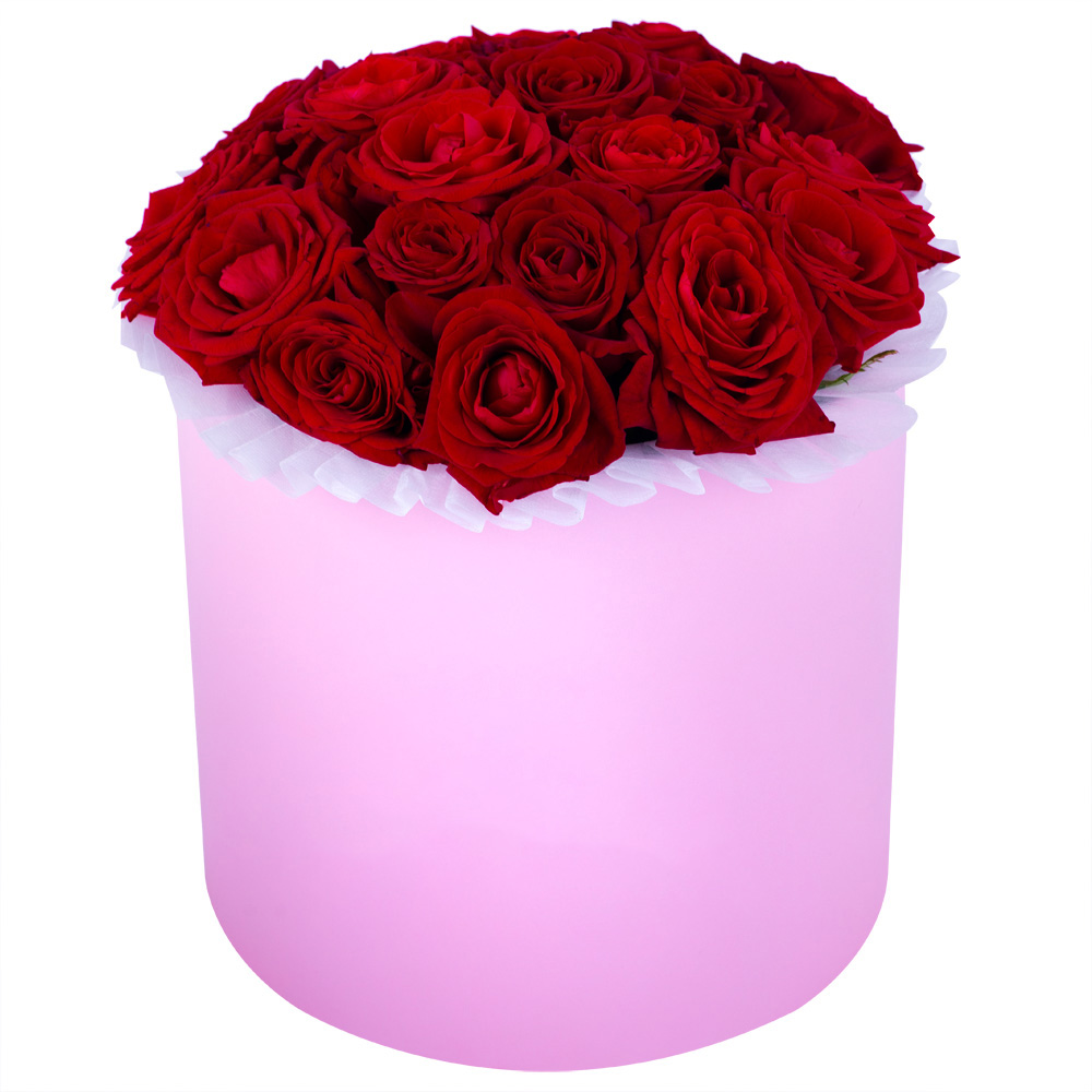 Букет из 21 красной розы premium в розовой шляпной коробке