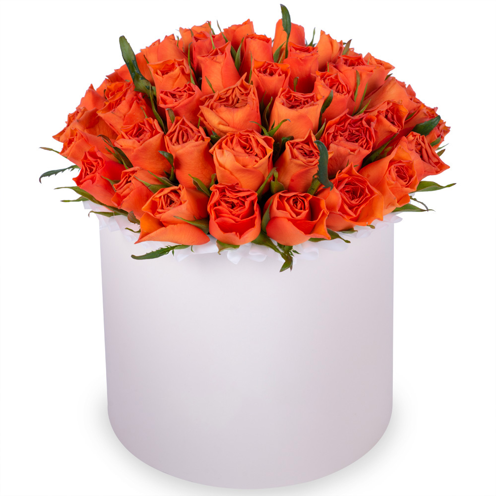 51 оранжевая роза в кремовой шляпной коробке