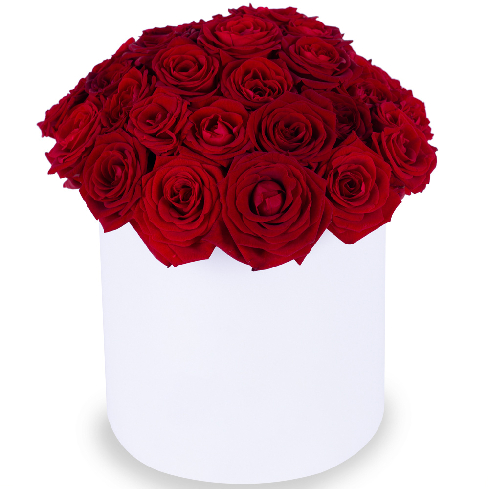 Букет из 35 красных роз premium в белой шляпной коробке