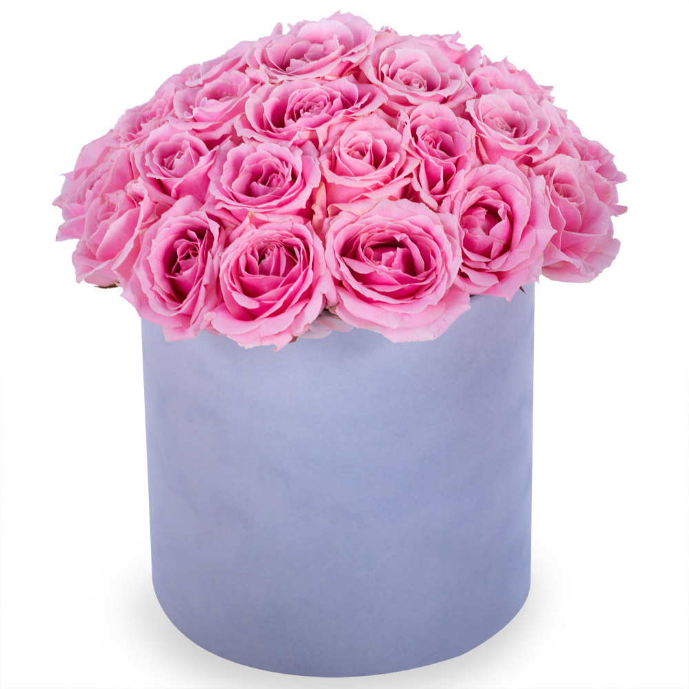 Букет из 35 розовых роз premium в серой бархатной шляпной коробке