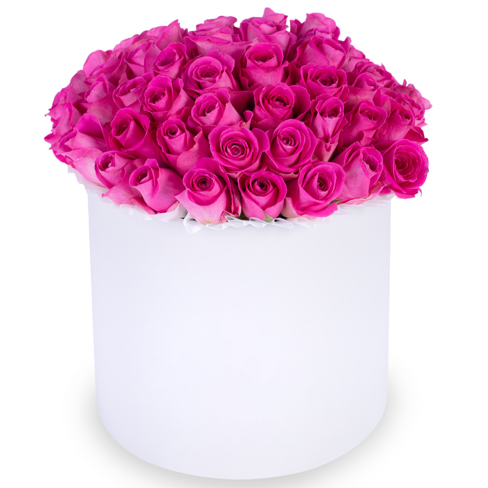 Букет из 51 розовой розы в белой шляпной коробке