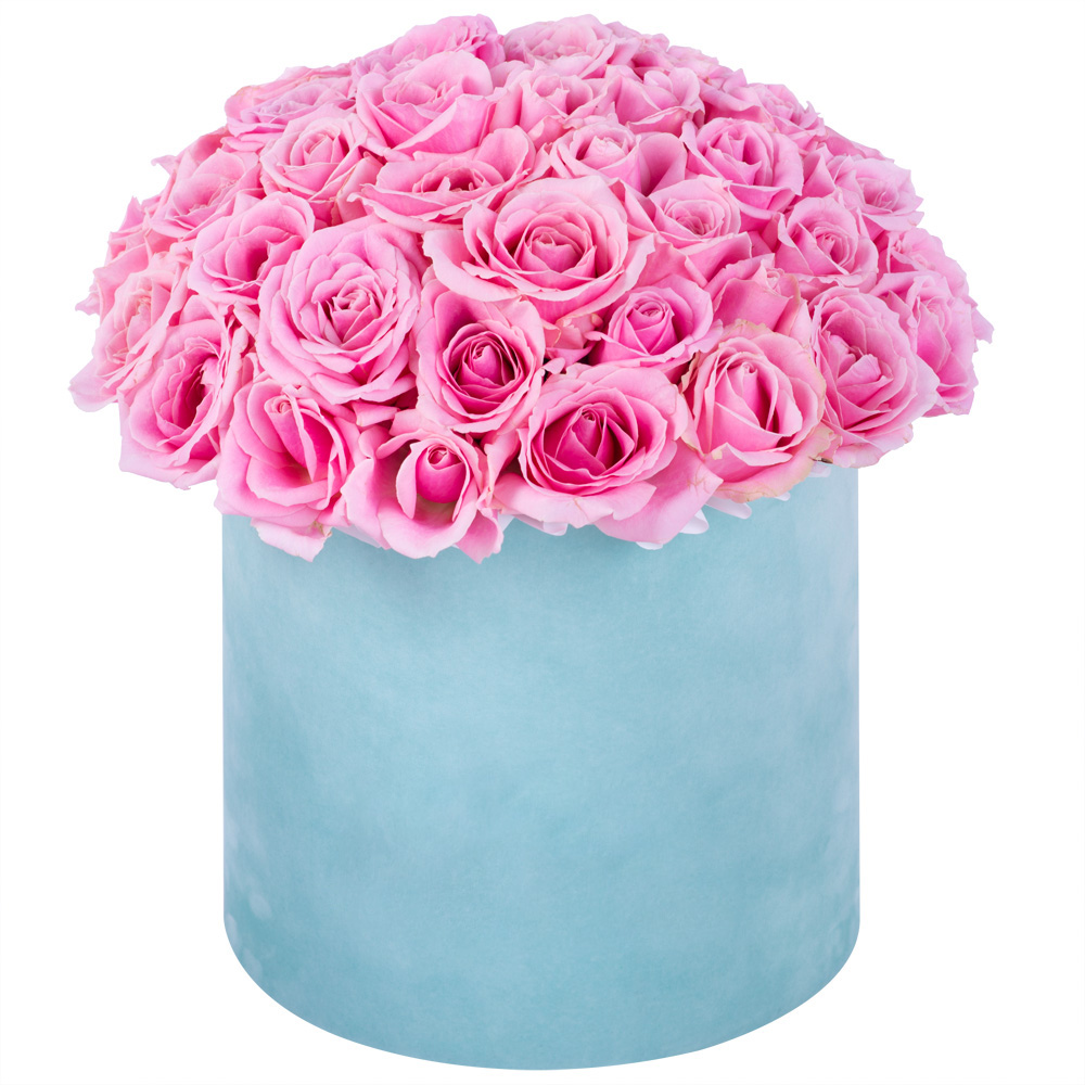 Букет из 51 розовой розы premium в бархатной шляпной коробке