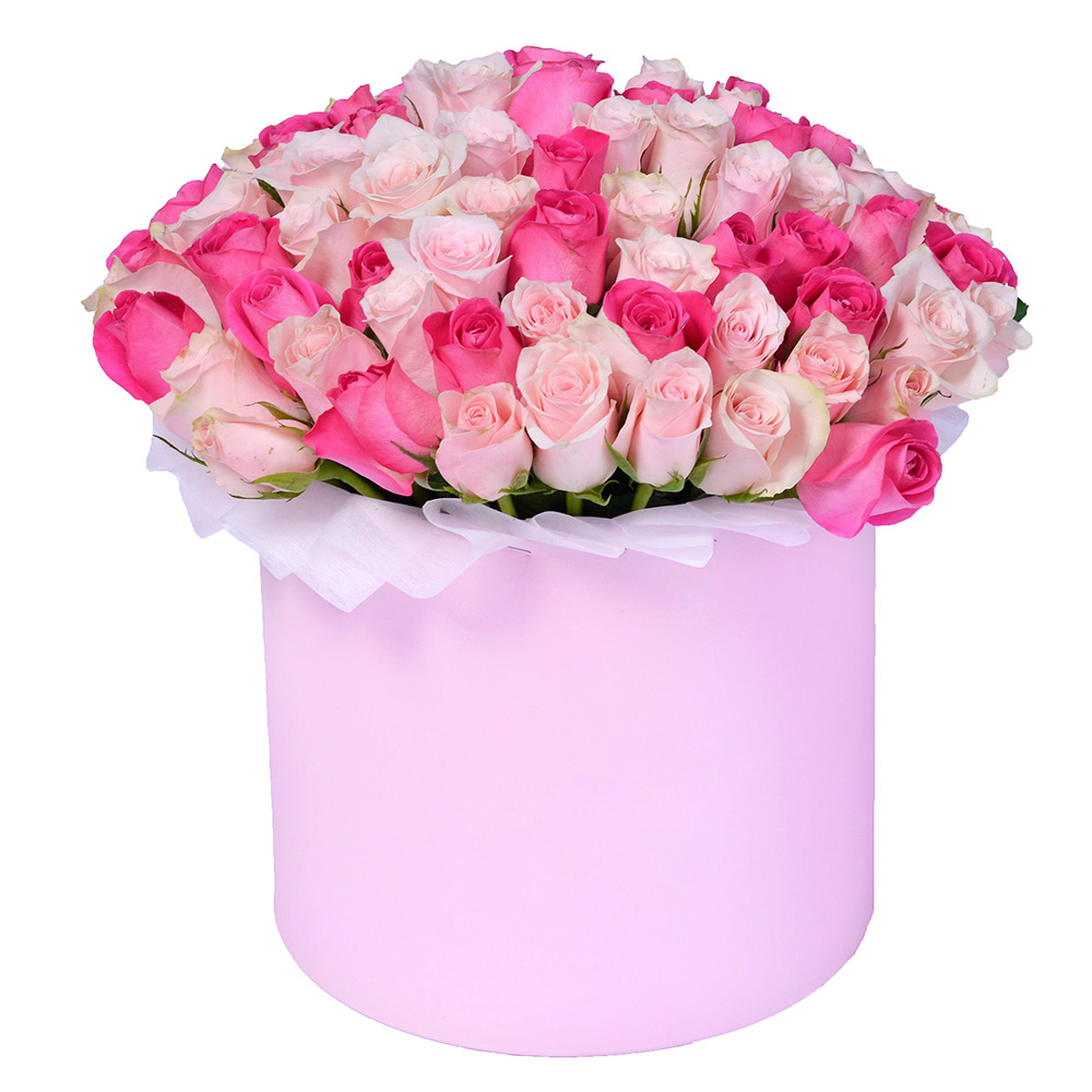 Букет из 51 разноцветной розы в шляпной коробке