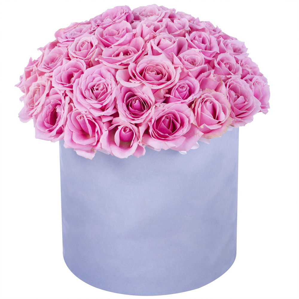 Букет из 51 розовой розы premium в серой бархатной шляпной коробке