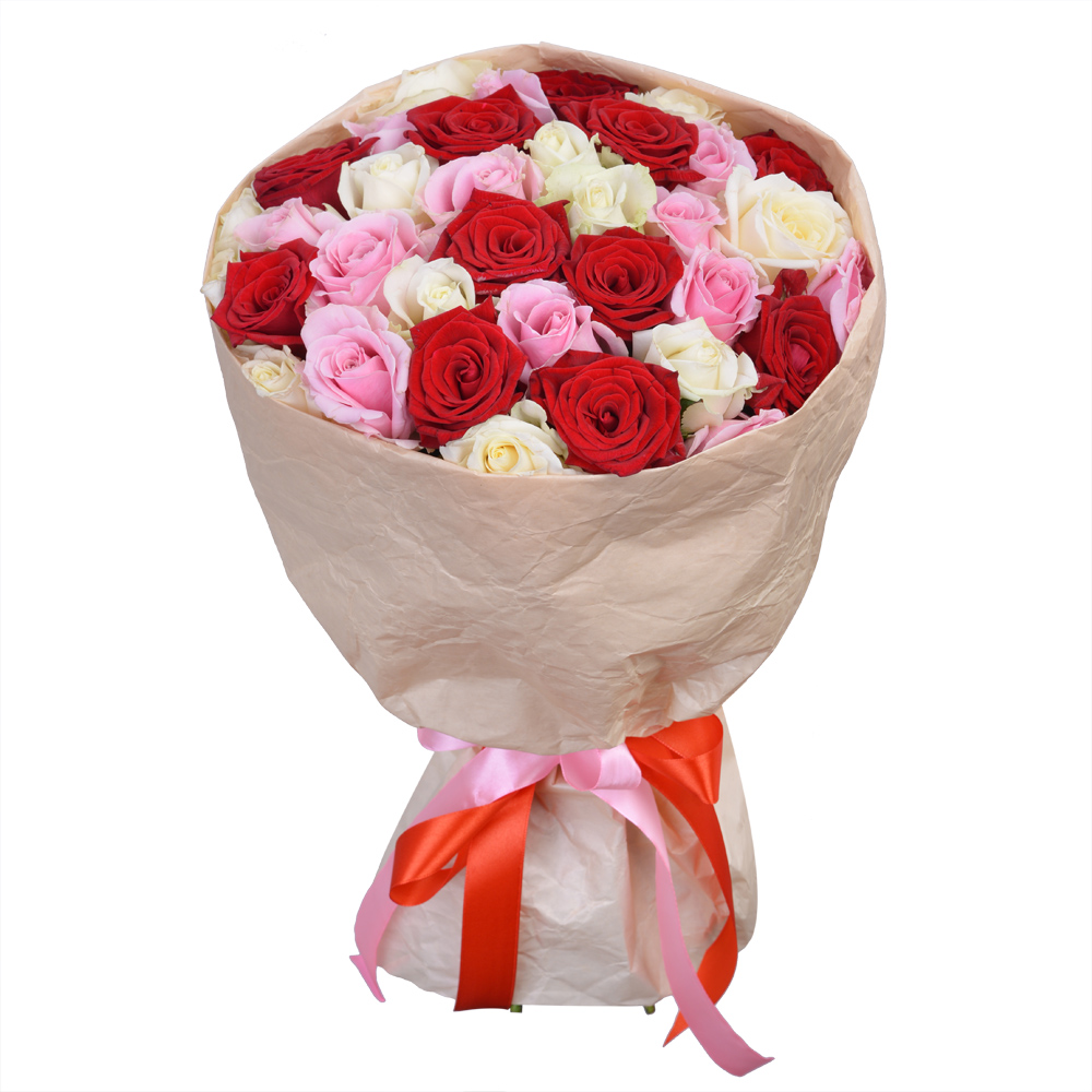 35 разноцветных роз premium 40 см