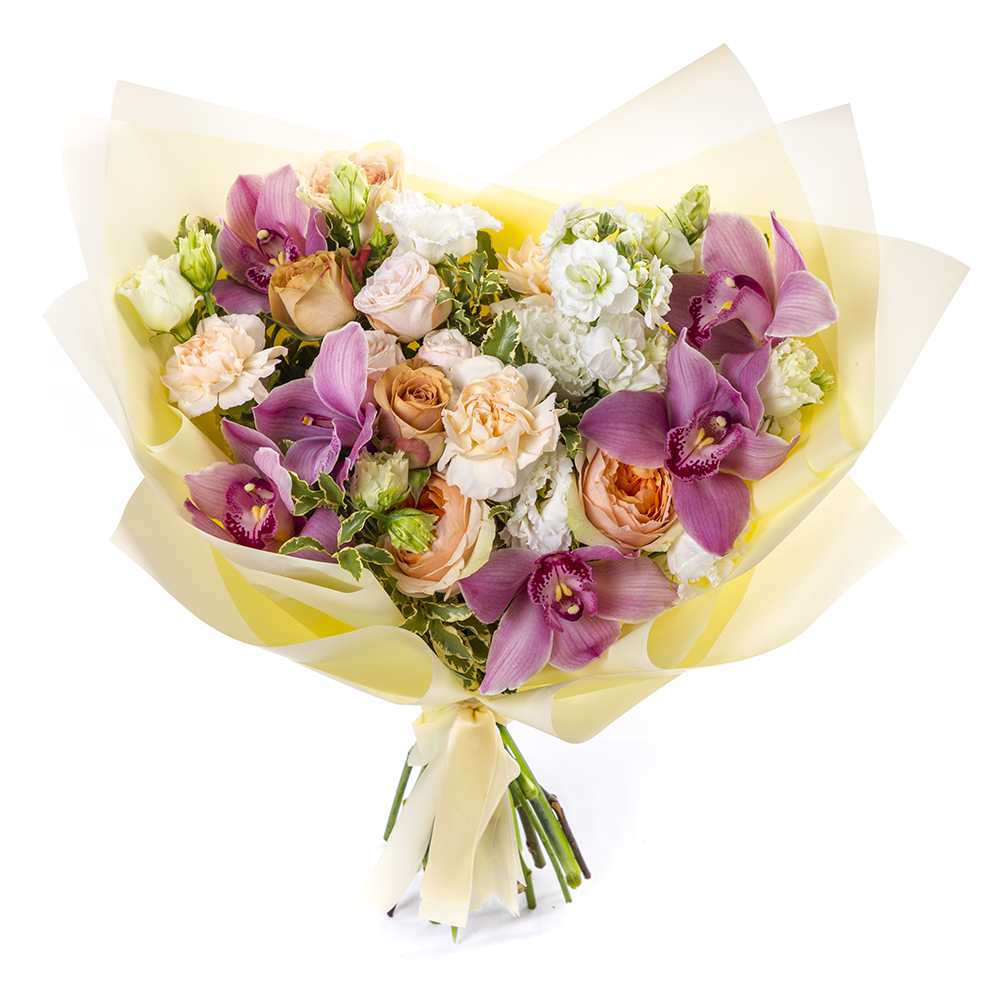 Букет из роз, цимбидиума и эустом