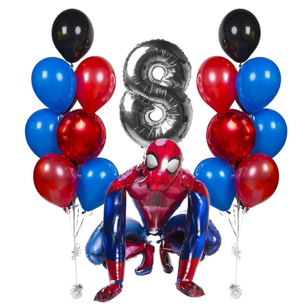 Фольгированный шар цифра "8" серебро, 102 см – 1 шт. Фольгированная ходячая фигура Человек-паук, 91 см – 1 шт.