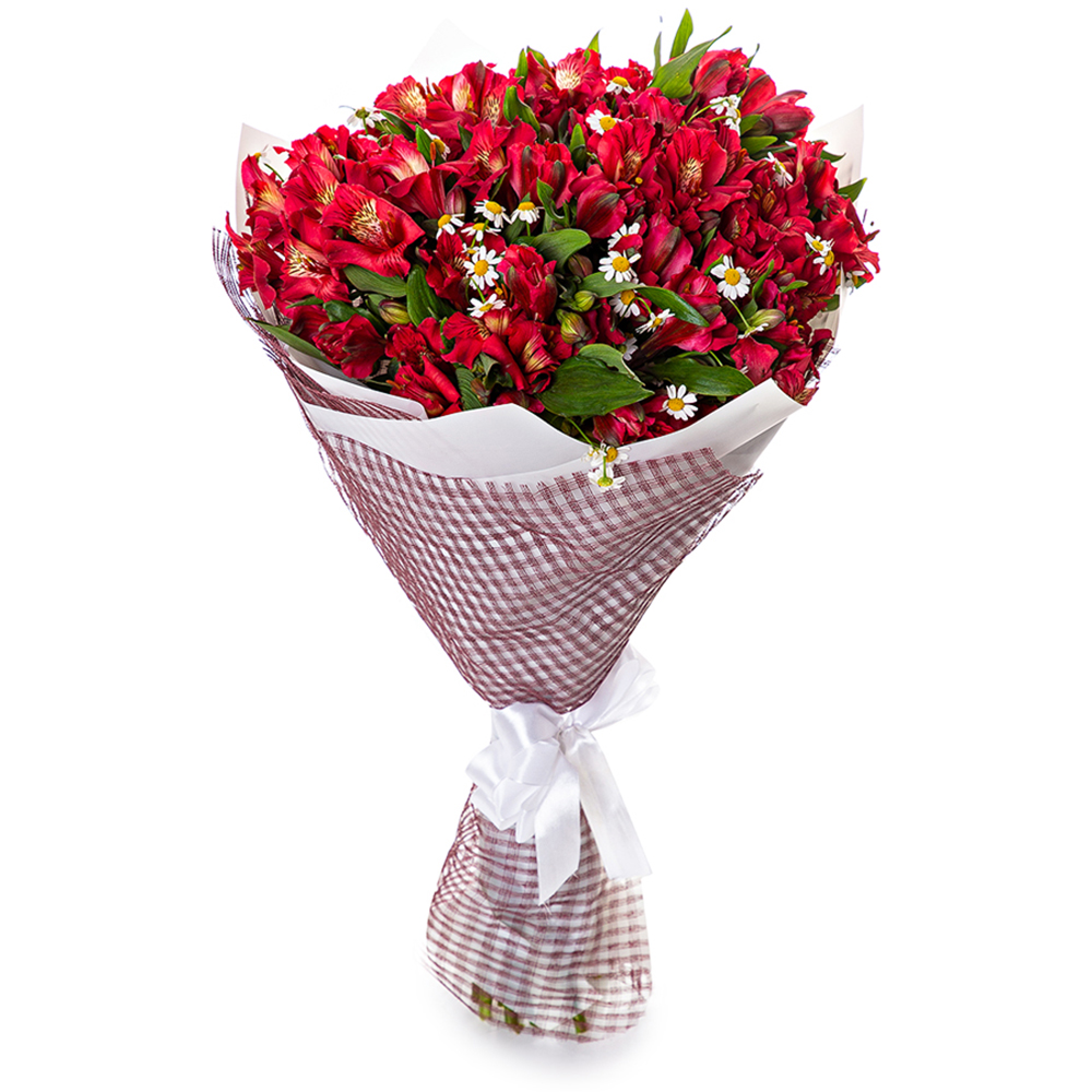 Букет из 15 альстромерии и танацетума