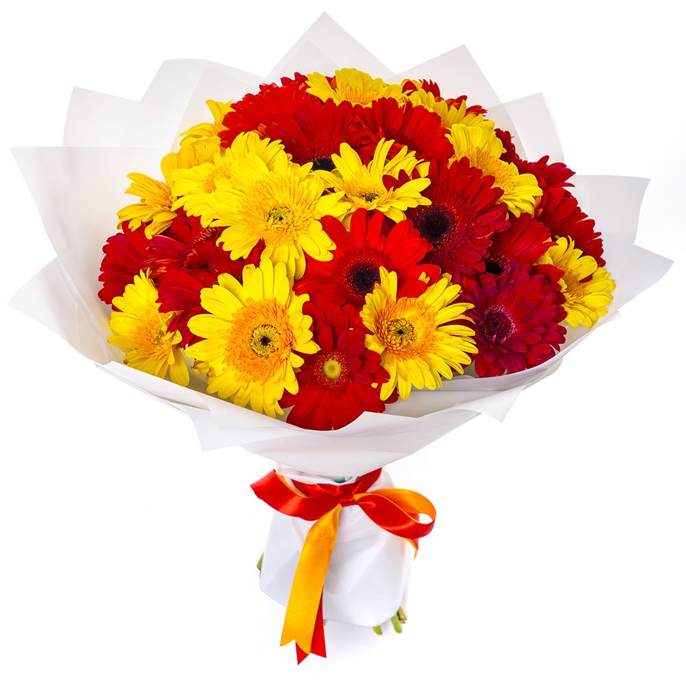 Букет из 29 разноцветных гербер