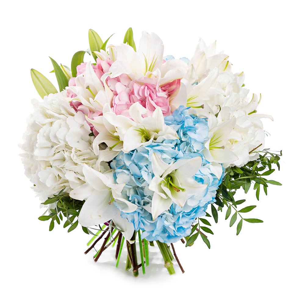 Букет из гортензий и лилий