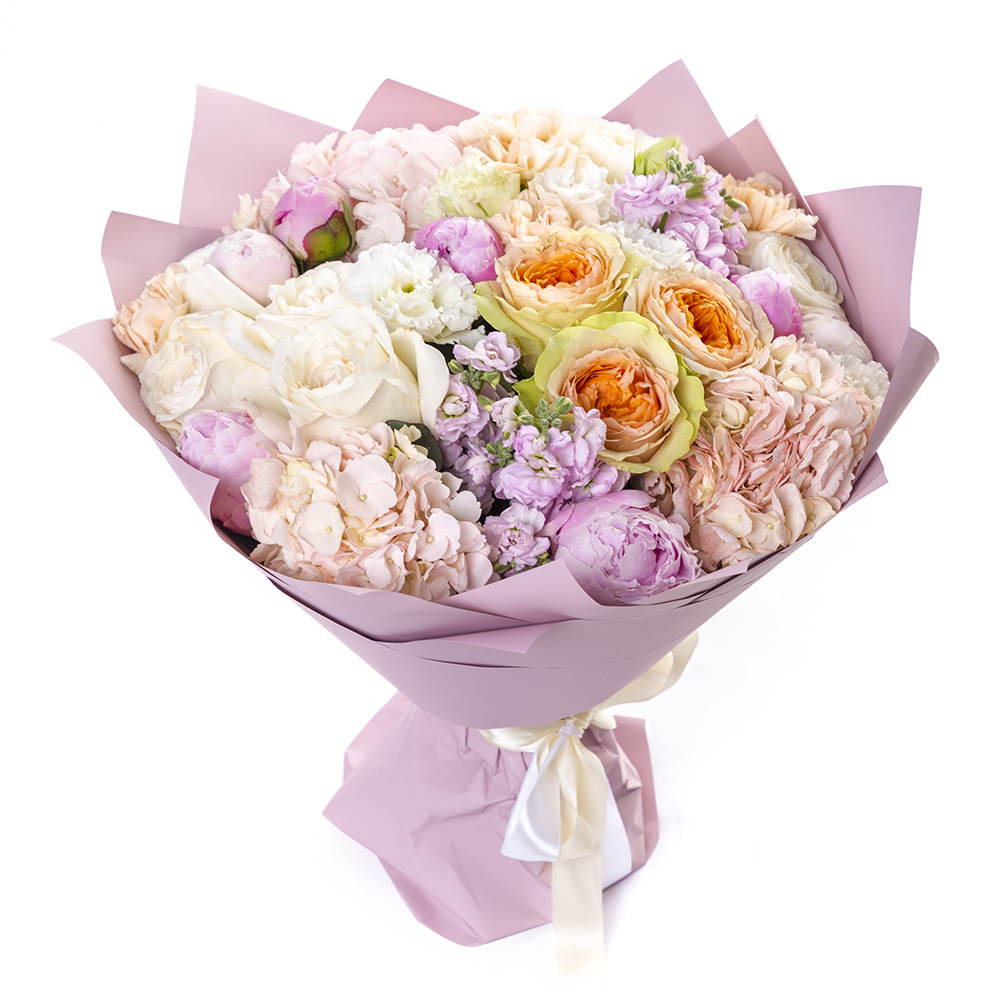 Букет из роз, гортензий, пионов и ранункулюсов