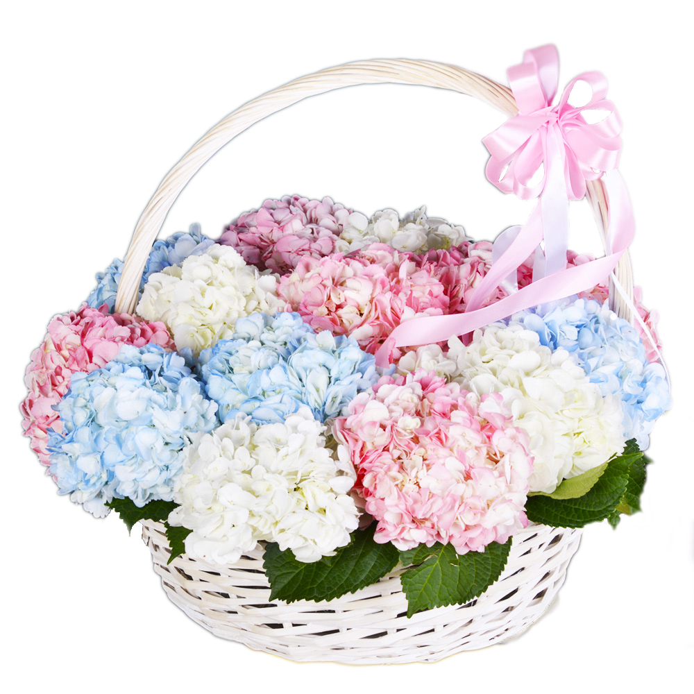 Корзина 15 разноцветных гортензий