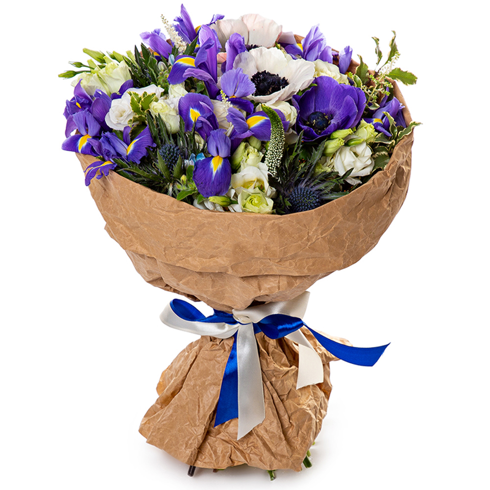Букет из роз, ириса и эустом