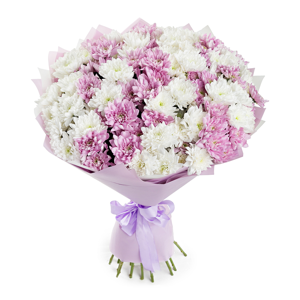 Букет из 25 разноцветных хризантем
