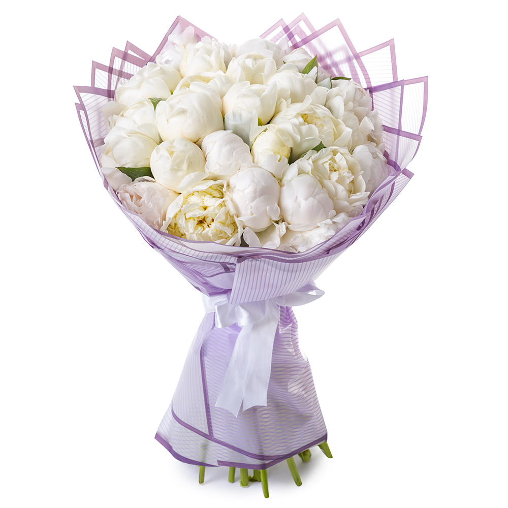 Букет из 21 белого пиона