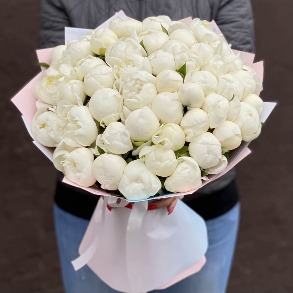 Букет из 51 белого пиона