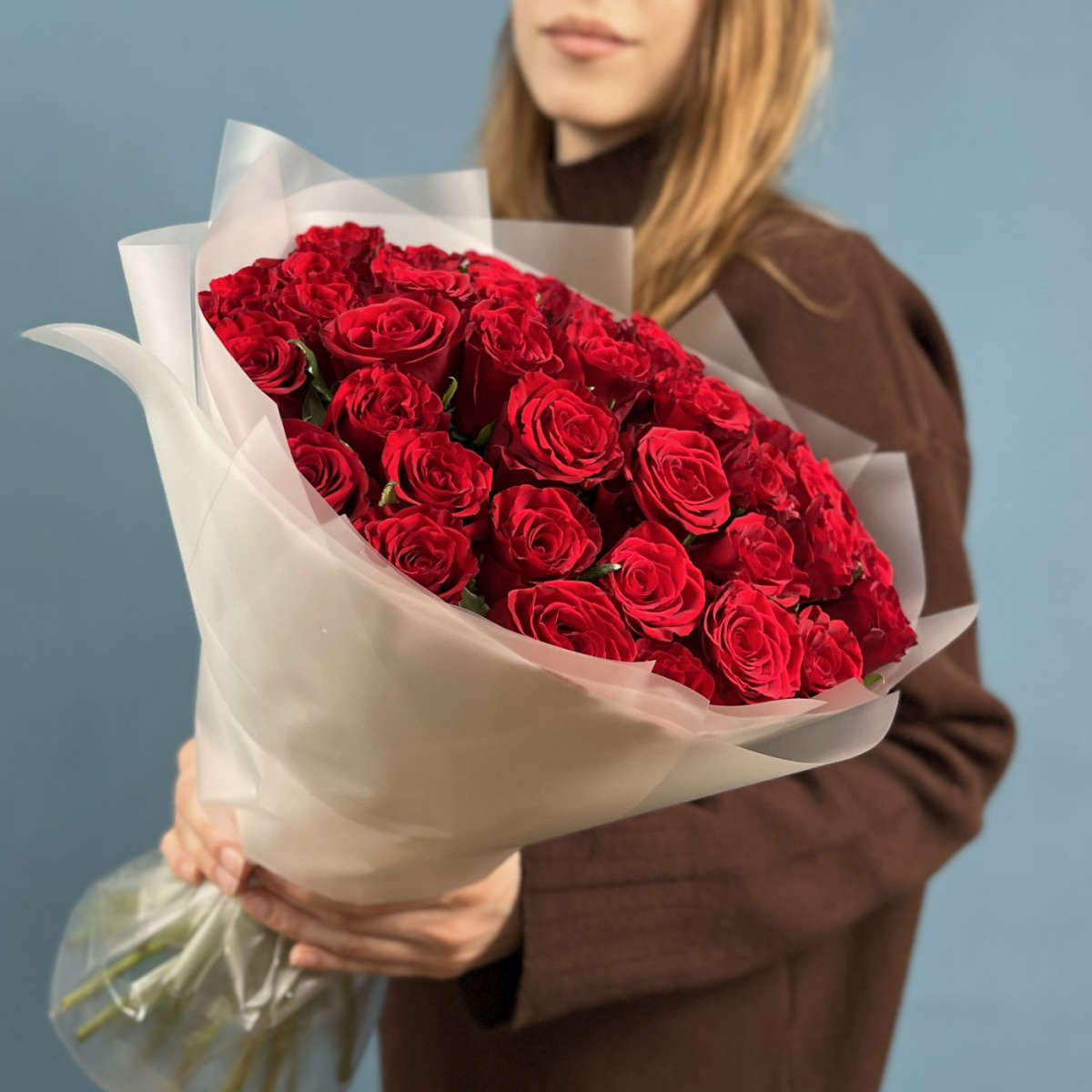 35 красных роз 40 см