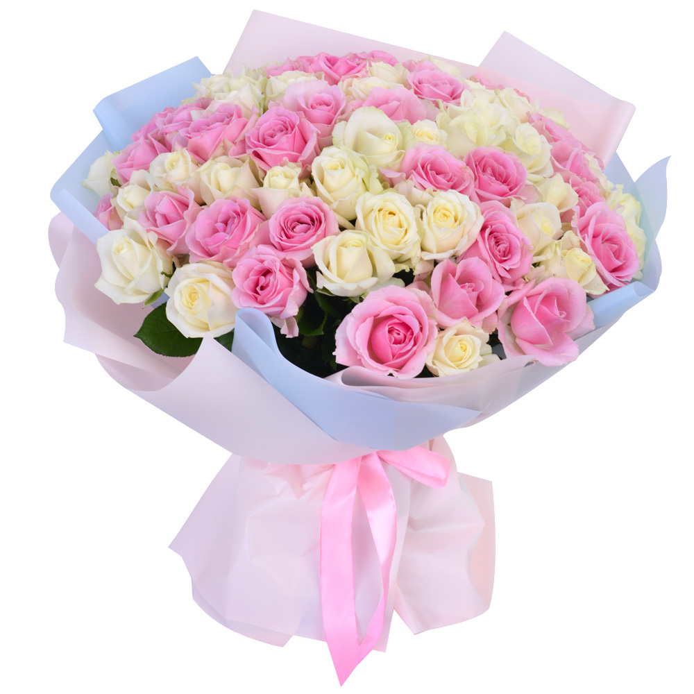 Букет из 75 разноцветных роз Premium 40 см