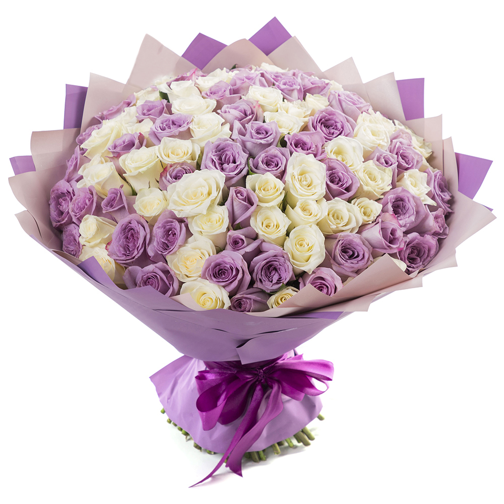 Букет из 101 белой и сиреневой розы