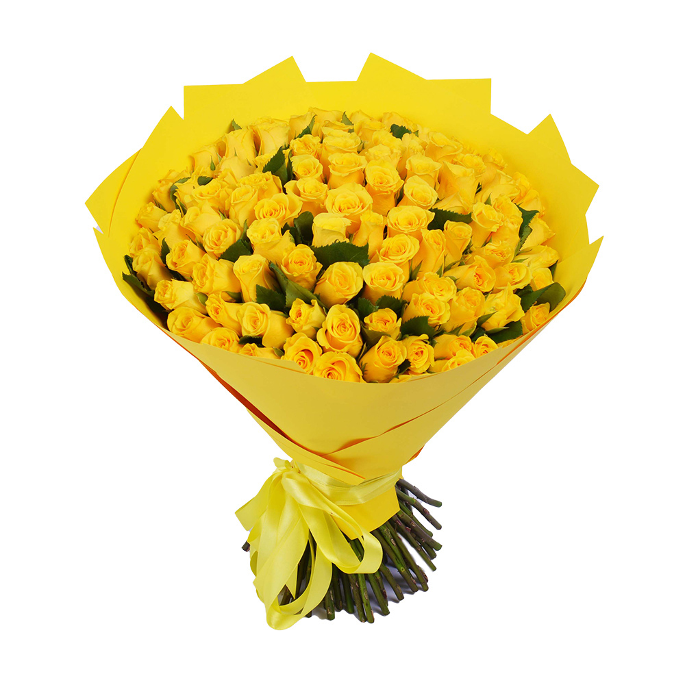 101 желтая роза в крафте