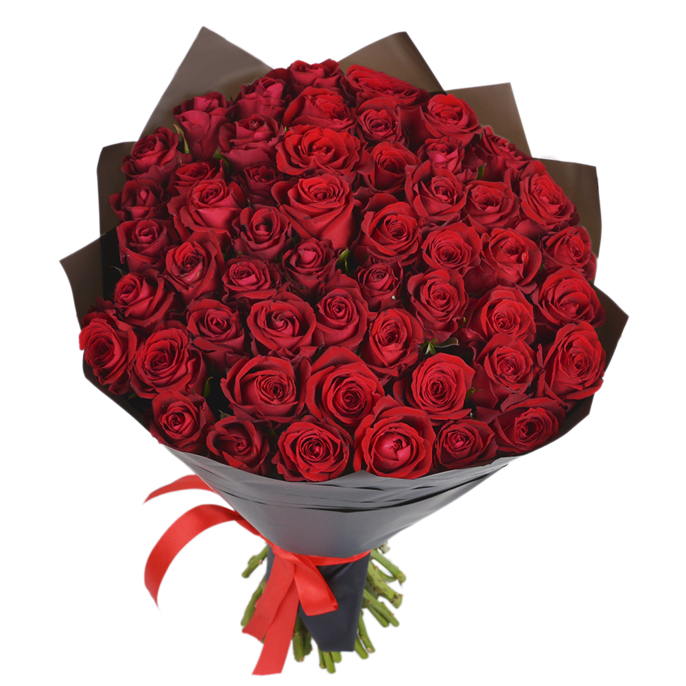 51 красная роза в пленке 40 см.