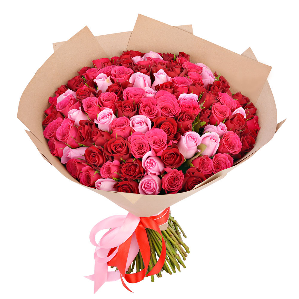 Букет из 101 розы Ягодный микс в крафте