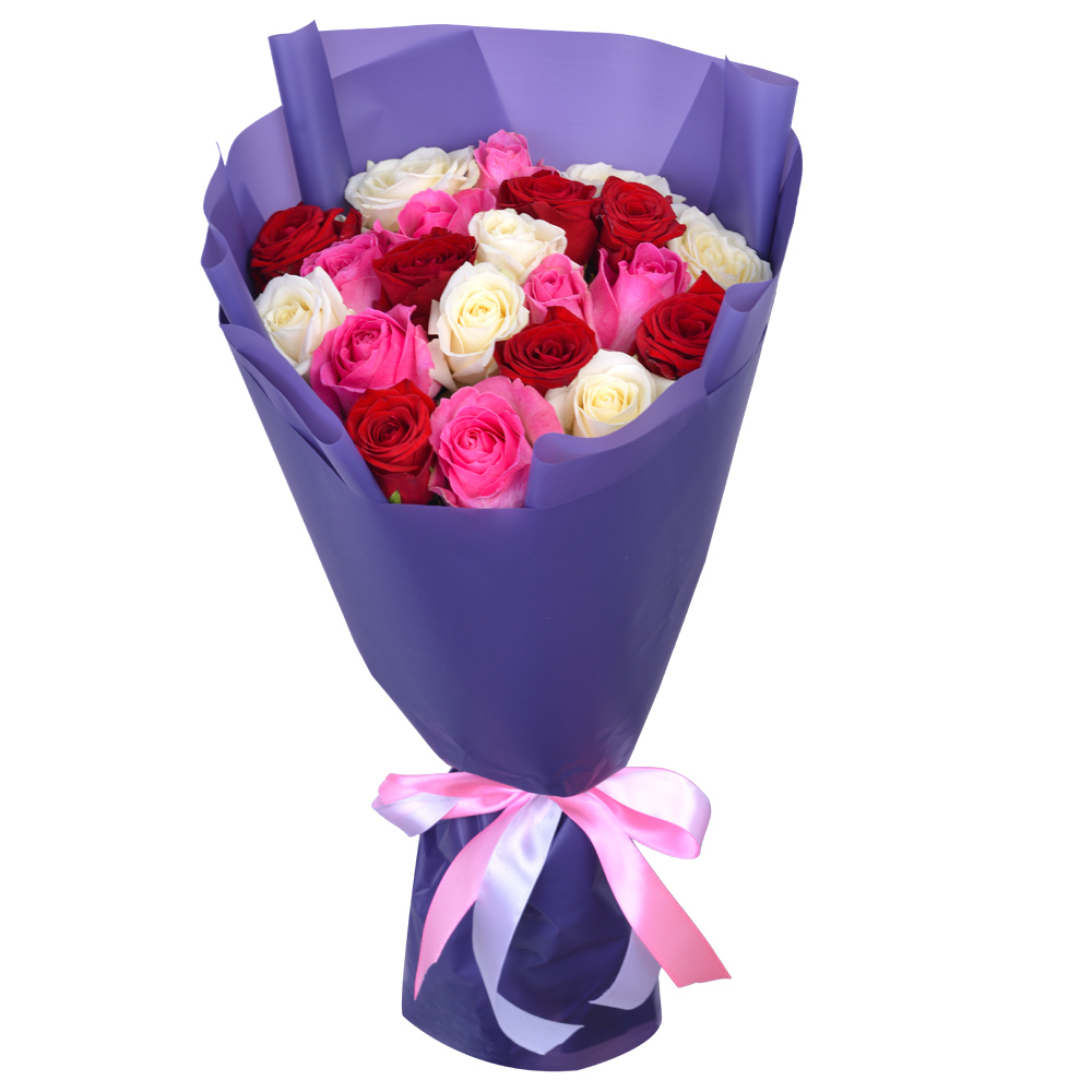 Букет из 21 разноцветной розы 50 см