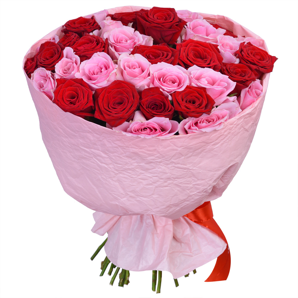 Букет из 35 разноцветных роз 40 см