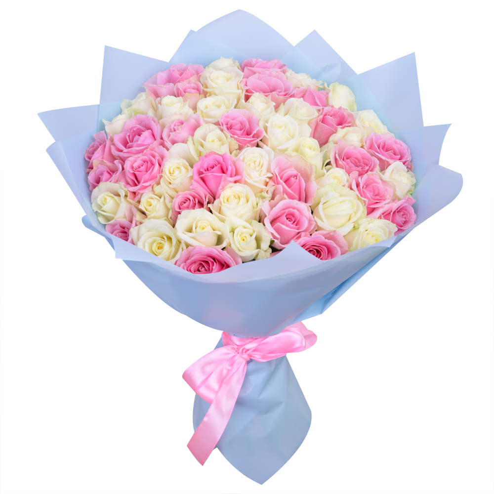 Букет из 51 белой и розовой розы premium 40 см