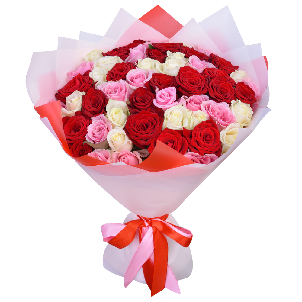 Букет из 51 разноцветной розы 40 см