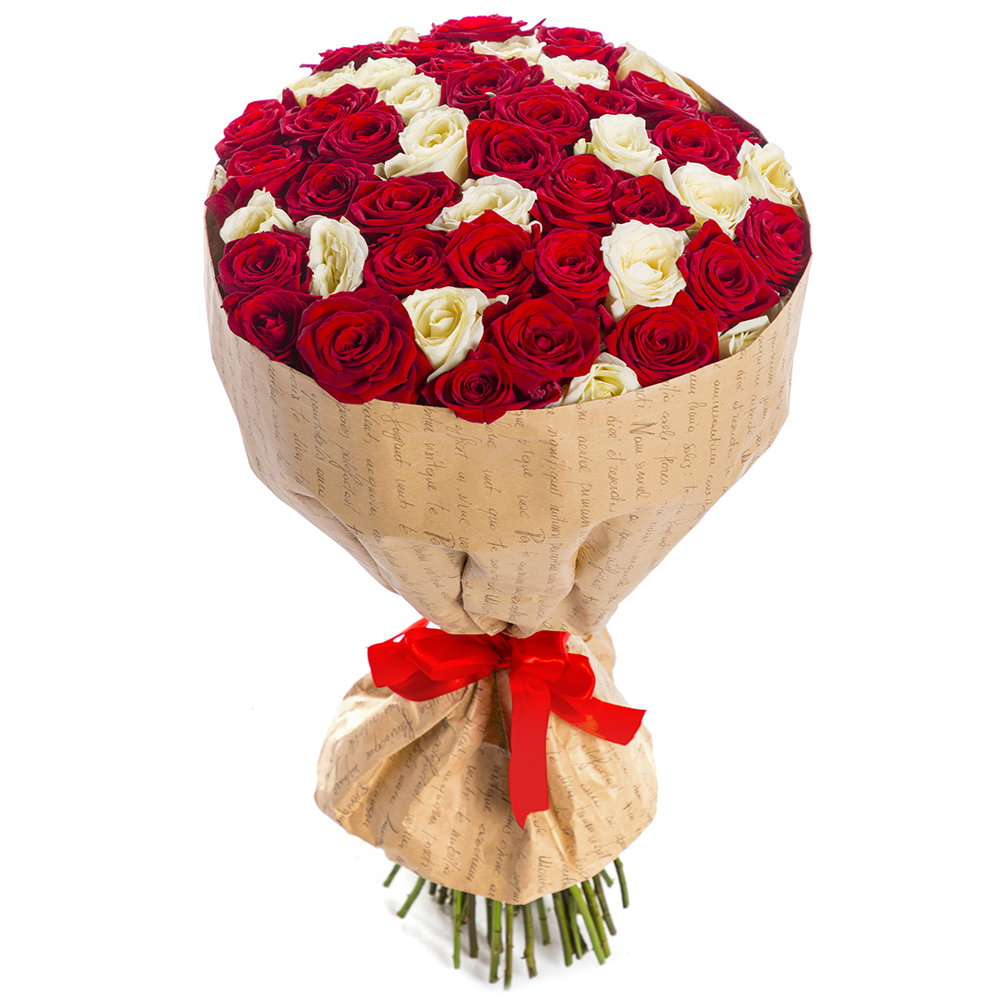 51 красная и белая роза 60 см