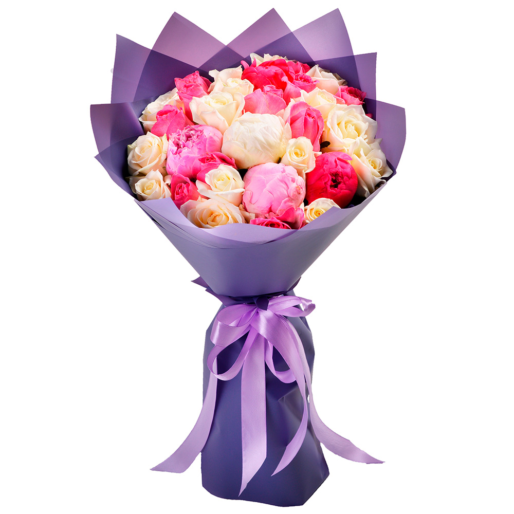 Букет из роз и пионов
