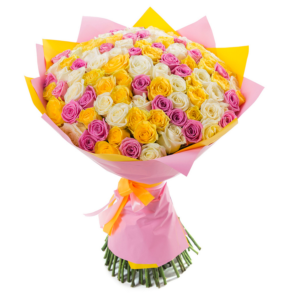 Букет из 101 разноцветной розы 60 см