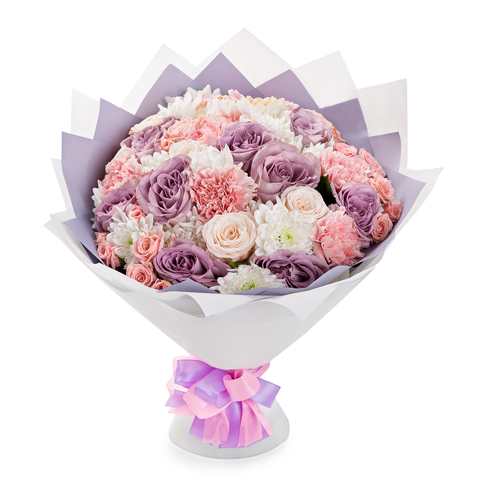 Букет из роз, гвоздик и хризантем