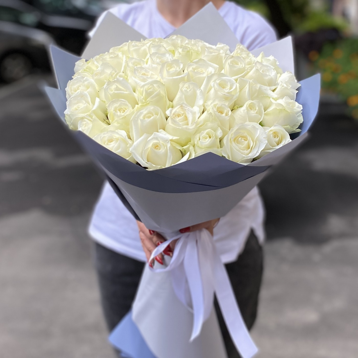 51 белая роза Premium 50 см