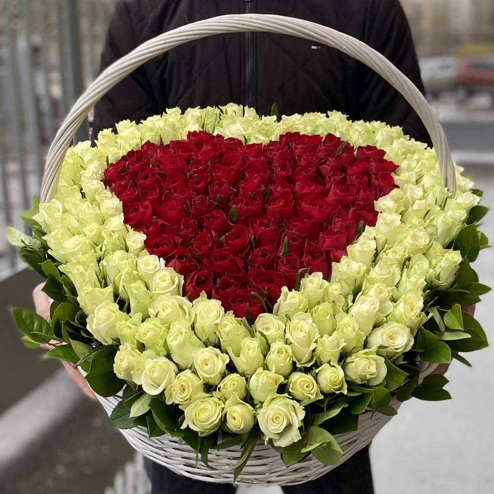 201 роза Сердце в корзине