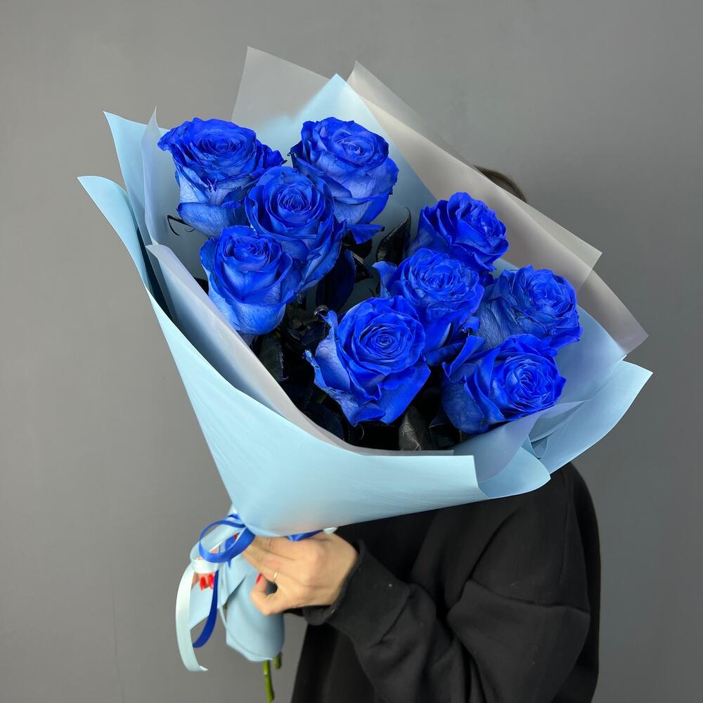 Роза синяя - 9 шт.