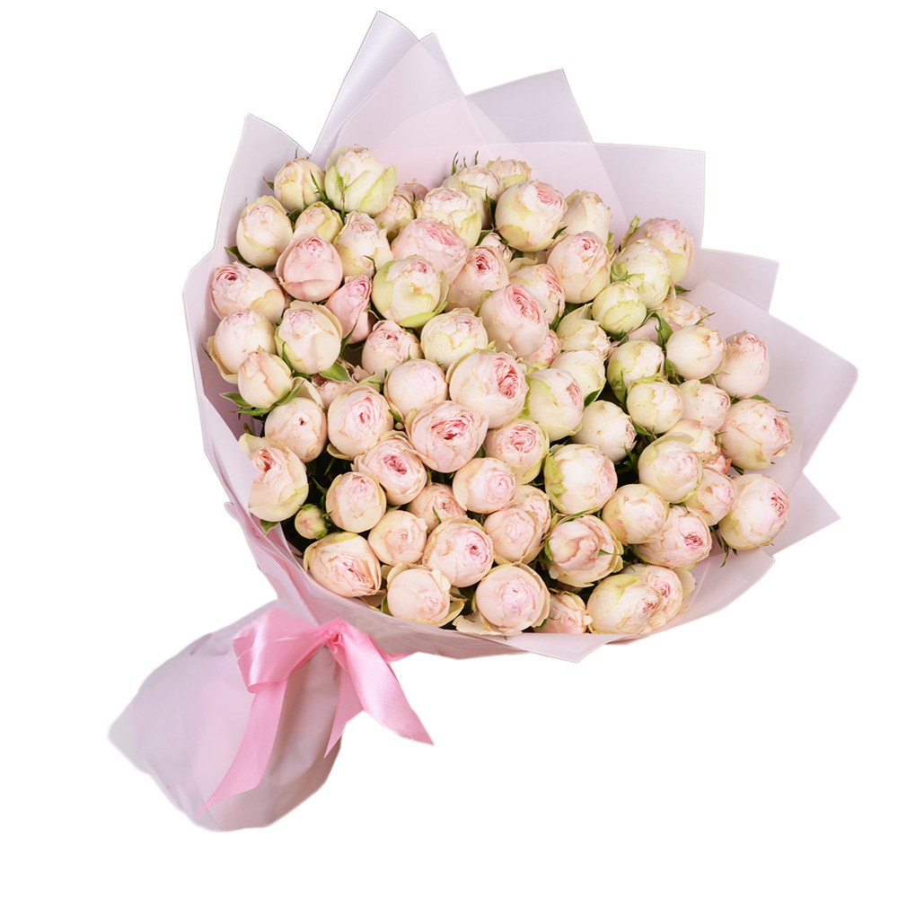 19 розовых пионовидных роз