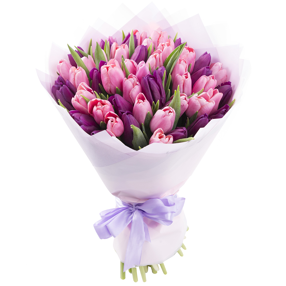 Букет из 51 разноцветного тюльпана