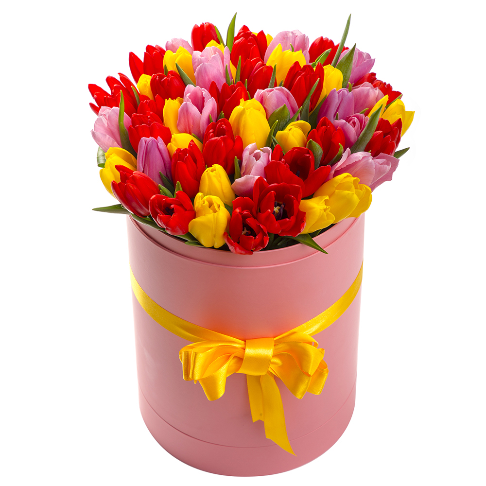 51 тюльпан в шляпной коробке